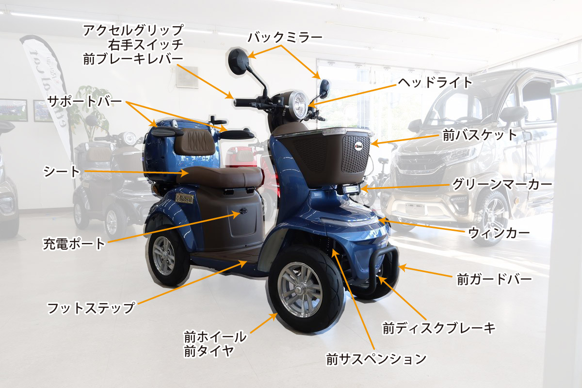 【e-moLUNAR】は電動キックボードより安全性の高いスクーター型の4輪電動自転車です。